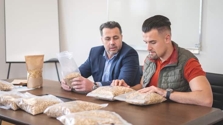 Simon-Pierre Kerbage (à g.)le propriétaire de Bossy Céréales, et Marc Folli, directeur des opérations, projettent de quadrupler d'ici à deux ans la capacité de production globale de l'entreprise.