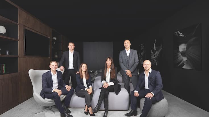 Les cofondateurs de la société, Cyrille Pinget et Remo Berguglia (tous les deux à dr.) entourés par leur équipe.