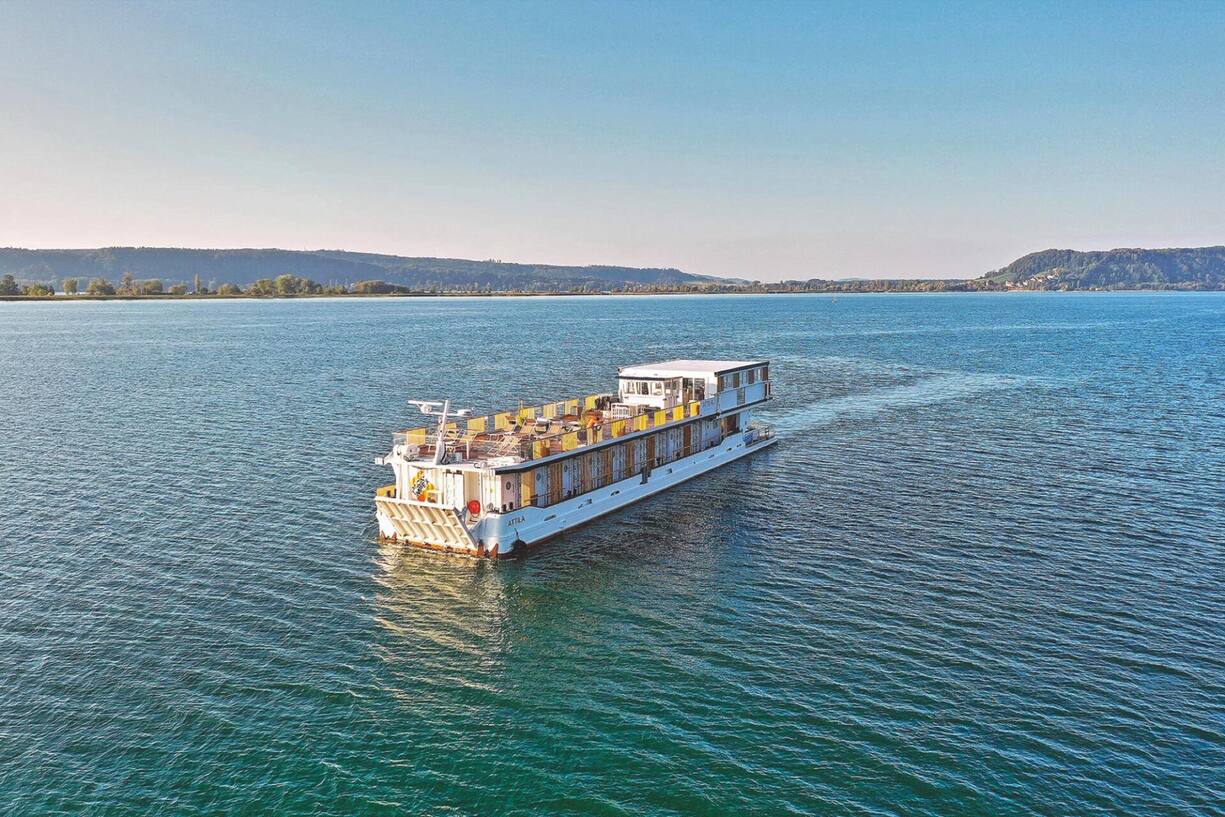 Le bateau comprend neuf cabines doubles installées dans autant de conteneurs et peut accueillir 18 passagers à son bord.