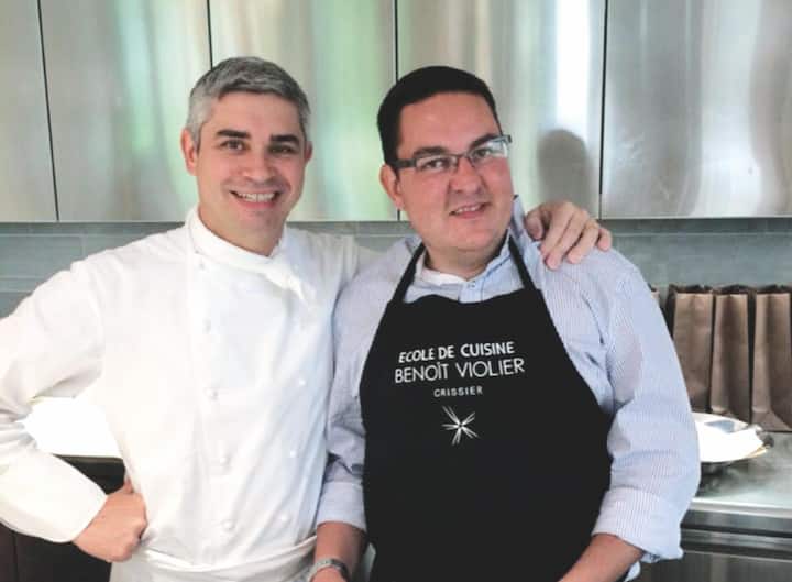 Avec le regretté Benoît Violier, à l’Hôtel de Ville de Crissier, en 2014.