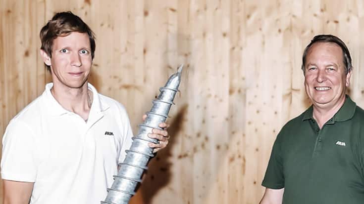 Jean-Luc et Loïc Rochat, père et fils (ici avec des vis de fondation pour «un montage sûr, simple et sans béton»).