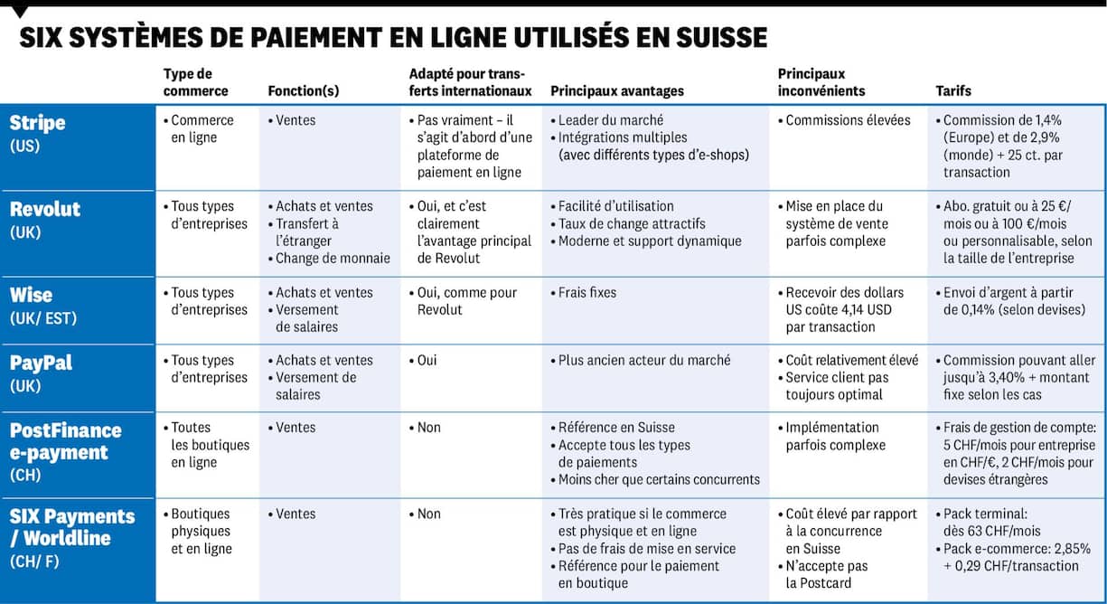 «En premier lieu, il faut identifier les besoins de son entreprise», résume Romain Prieur, expert-comptable diplômé associé auprès de la fiduciaire Karpeo, à Genève. Pour choisir un système approprié, il faut en priorité analyser si le commerce est principalement physique ou en ligne et s’il compte opérer des transactions en francs suisses uniquement ou également en devises étrangères.